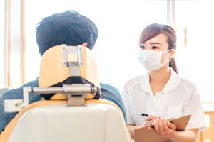 口腔内の写真撮影、歯科用CTによる検査、かみ合わせの確認、